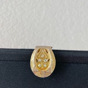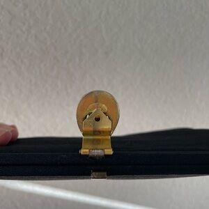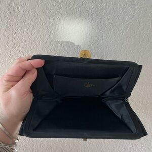Description: stunning black 1960’s clutch purse with an ornate gold and jeweled claspe