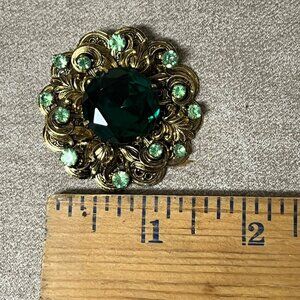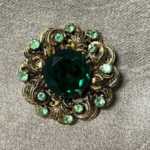 Vintage Jewelry 1950s Mid-Century Emerald Diamante Floral Pin