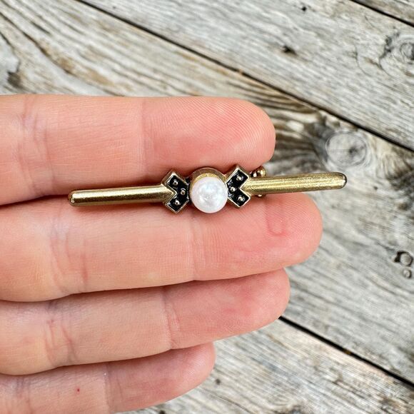 Vintage Jewelry Bar Pin with Faux pearl Bar Long Brooch