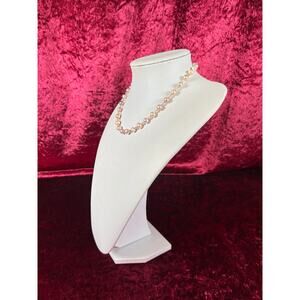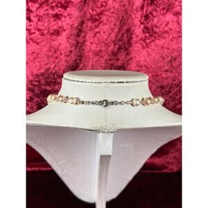 Vintage Jewelry - Beaded Necklace - Faux Pink Pearls and Crystal Beads - 17"
