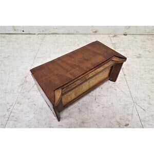 This is a beautiful way to store your jewelry. This jewelry casket is imported from England and is made from a lovely wood. The top lifts up and the inside is lined in a purple fabric. I know it looks more blue in the photos but it is definitely a solid purple. This vintage piece is in good condition with minor age appropriate finish loss and a small chip down the bottom towards at the back. Please see all the pictures for details.