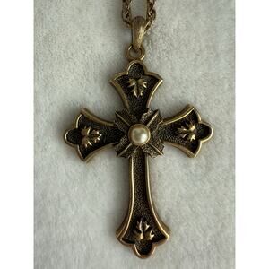 This beautiful, large, gold-tone pendant cross necklace is in excellent condition.
