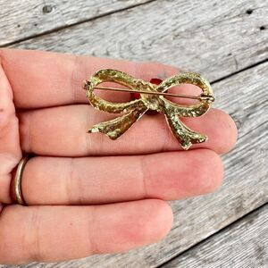 Vintage Jewelry Gold Tone Bow Brooch With Rose Ribbon Brooch with Rose Pin