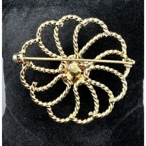 Vintage Jewelry Gold Tone Round Twist Flower Rose Faux Pear Rose Brooch Pin