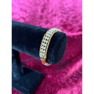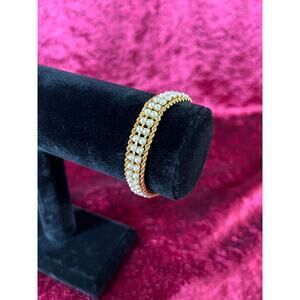 Condition: In good vintage condition, minimal wear to gold tone of bracelet. One pearl is missing next to the clasp. See pictures.