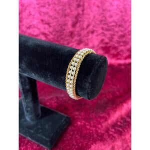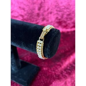 Vintage Jewelry - Multi-Strand Bracelet - Gold Tone - Dainty Faux Pearls - 7"