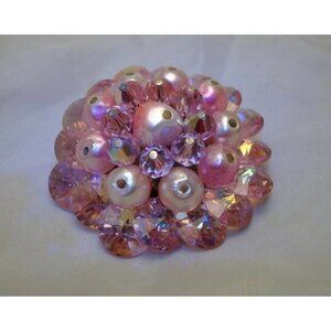 Here is a beautiful vintage pin of pink AB crystals and faux pearls. The pin measures 1 1/2" and is in fine condition. This item came from the estate of a women who just kept inheriting things from her relatives until she passed away with only a niece and everything ended up in a sale. She had a ton of jewelry both fine and costume most look as though they were never worn and I was lucky enough to purchase most of it. All of this jewelry is guaranteed to be old and not a reproduction