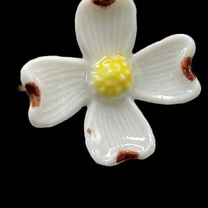 • Style Profile: Vintage, Flowers, Porcelain, Clip on earrings, Pin, White, Yellow, Brown, Unknown Base Metal