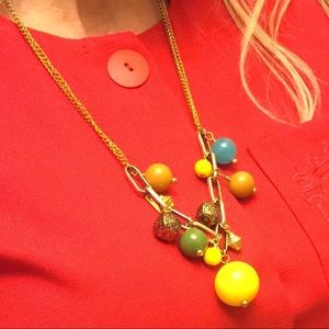 I'm crazy about this bold, bright 3-piece jewelry set! Spanning 3 decades this one-of-a-kind statement set has been repurposed with a fusion of a J CREW 80's bracelet, a 70s chain and completed with these fabulously unique earrings created from an 80's necklace.