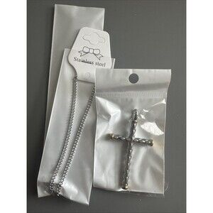 Vintage Jewelry Silver Gold Religious Cross Pendant 2.5 Inch Stainless Steel