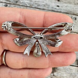 Vintage Jewelry Silver Tone Avon Brooch with Dangling Purple Rhinestone Pin