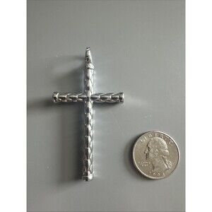 Vintage Jewelry Silver Tone Religious Cross Pendant 2.5 Inch Stainless Steel