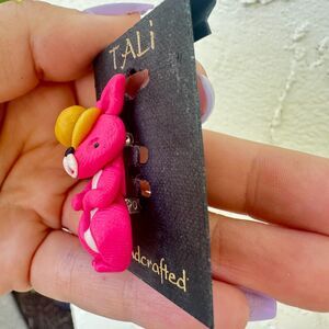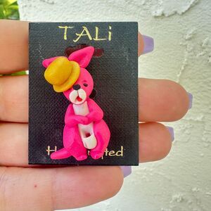 Vintage Jewelry Tali Handcrafted Pink Kangaroo Brooch Poland Kangaroo in Hat pin