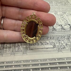 Vintage Jewelry Tigers Eye Pendant with Gold Tone Filigree Brown Gold Pendant