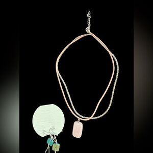 Interesting and excellent collection to keep, gift or resell. 4 necklaces 1- glass beads / with pink quartz pendant, 1 ombré waterfall glass beads, 1 black / white hearts wire collar 1- artisan made glass bead embroidery unique necklace. 2 pins- one pewter water can 1-Victorian style bar pin w heart 2- earrings 1 dangling gold chains 1 handmade glass and wood dyed beads 3 bracelets 1- artist made green mixed crystals and wire, 1- hematite and rose quartz 1- vintage Abilene Freeform bead and pearl wrap bracelet (60’s). Great lot, all great condition. Excellent value, questions? Do ask.