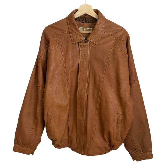 Vintage Jewels Mens Leather Bomber Jacket Brown Size 2XL Retro Rugged Western
