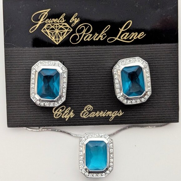 This Vintage Jewels by Park Lane Blue w/ Crystal-like stones in Silver Tone/ Retro style features the earrings original packaging and both Necklace & Earrings were never worn. This item was passed down from a great Aunt. Jewels by Park Lane is a quality brand that started in 1955. The company was a home-to-home sale item. The earrings are clip on, and the necklace closure is a smaller type of lobster claw. The stones remind one of Blue Topaz and the smaller clear stones are flashy, but not too flashy. This is a great rare find in this unused, excellent condition. Many Thanks for supporting small businesses.