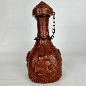 Vintage Jeyre Embossed Leather Don Quixote Decanter Wine Whiskey Spain set of 2