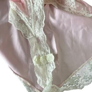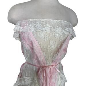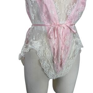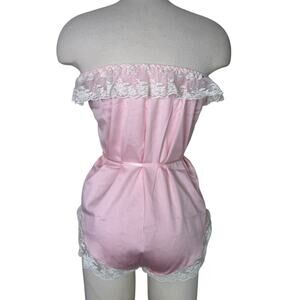 Vintage Jezebel Lace Bodysuit Teddy Lingerie Ruffle Strapless Pink White Small
