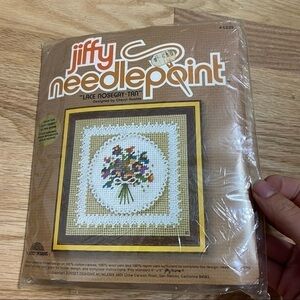Vintage Jiffy Needlepoint Lace Nosegay Tan Floral Craft Kit NEW