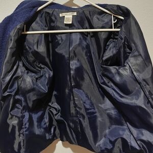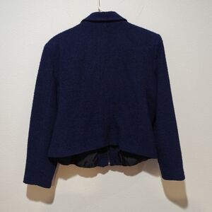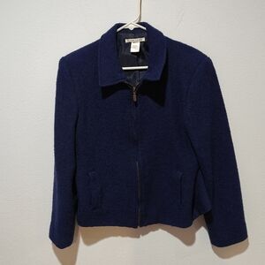 Vintage Jillian Jones Wool Blend Jacket Size 12 90s Full Zip Textured Navy Blue