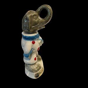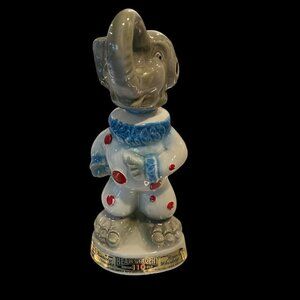 This vintage Jim Beam decanter, shaped as an adorable elephant, is a collector's gem. Its unique design and historical significance make it a valuable addition to any collection. The decanter displays artistry and craftsmanship of its time.