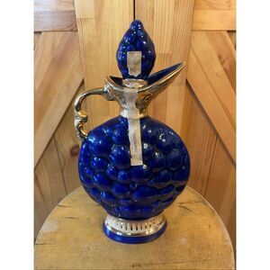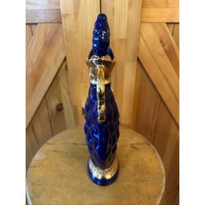 Vintage Jim Beam 1963 C Miller Decanter has wear/peeling of the gold off the bottle on the handle/the top and marks from the label on the gold bottom,the top cork is broken, but does sit in bottle see pictures approximately 12 inches with top in bottle for height(5196)
