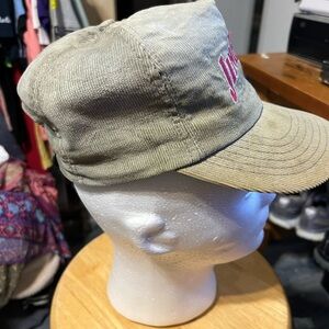 Vintage Jim Beam Corduroy SnapBack Hat in Gray. This classic 90s hat features an adjustable strap for a comfortable fit and is made of high-quality corduroy fabric. Perfect for any retro-themed outfit or a casual day out, this hat is a great addition to any wardrobe. The solid pattern and simple design make it a versatile accessory for any occasion. Get your hands on this one-of-a-kind Jim Beam hat today!