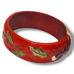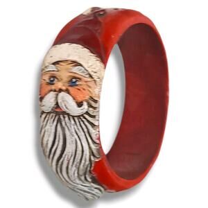 Vintage Jim Shore 1990 Santa Claus Bangle Bracelet Christmas Red