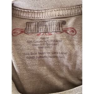 Officially licensed Jimi Hendrix tee from 2007. Features a bold faded red and brown graphic of Hendrix mid-performance framed in a vintage-inspired design. Soft cotton-blend fabric, single-stitch hem, and a timeless crew neck cut. Perfect for collectors, fans, or anyone who loves iconic rock style.