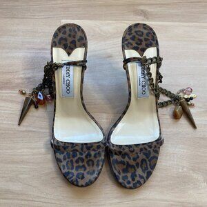 Vintage Jimmy Choo Brown Leopard "Edin" Charm Embellished Sandals Size 39.5 RARE