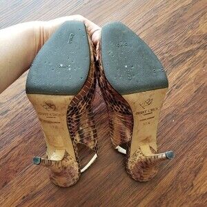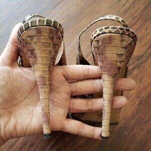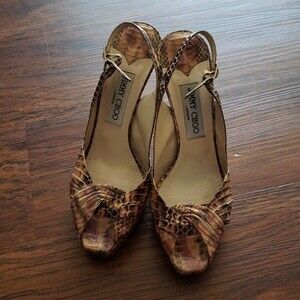 Vintage Jimmy Choo Brown Snakeskin Feminine Party Twist Peeptoe Pumps Size 37.5