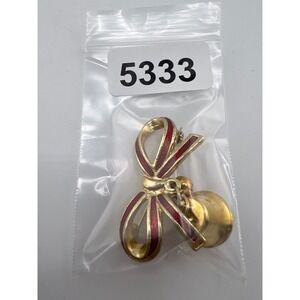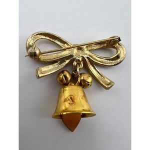 Vintage Jingle Bell Bow Metal Enamel Christmas Brooch Pin