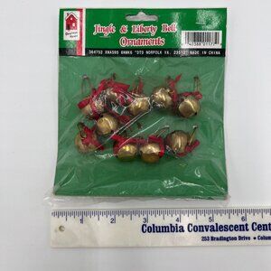 Vintage Jingle & Liberty Bell Ornaments - 8 Pack Of Tiny Brass Bells With Red Bo
