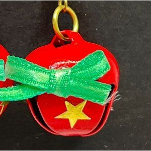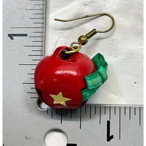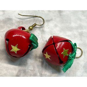 Vintage Jingle Sleigh Bells Earrings Red with Gold Stars Christmas Bells