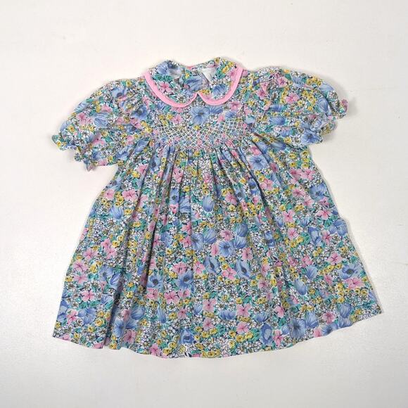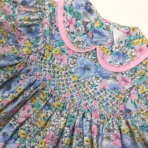 Vintage Jo Joe beautiful blue and pink floral smocked dress. Size 3