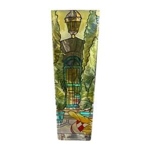 Vintage Joan Baker Stained Glass French Cafe 10”Rectangular Vase