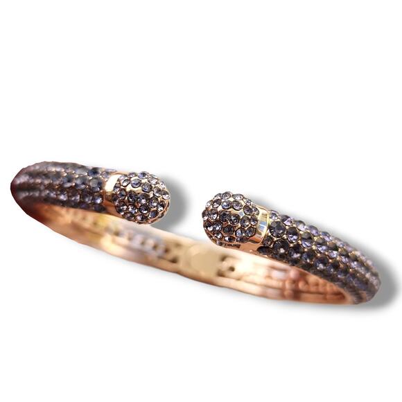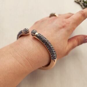 Purple Rhinestone Rose Gold Clamper Bangle Bracelet