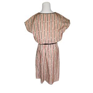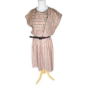 Vintage Joan Curtis Dress Striped Belted Short Sleeve Tan Black Red Sz 16