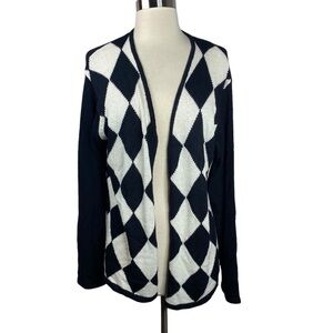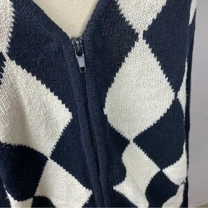 Vintage Joan Leslie Navy and White Argyle Knit Cardigan - Size M