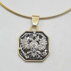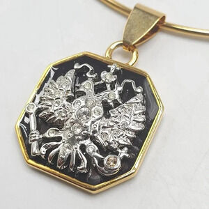 Vintage Joan Rivers Black Gold Imperial Russian Eagle Enamel Pendant Choker