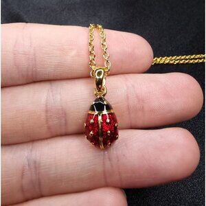 Vintage Joan Rivers Gold-Tone Necklace With Red Ladybug Pendant