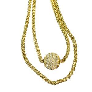 This heavy gold-tone chain is 28" in length and the Rhinestone ball pendant is approximately 3/4" in diameter.