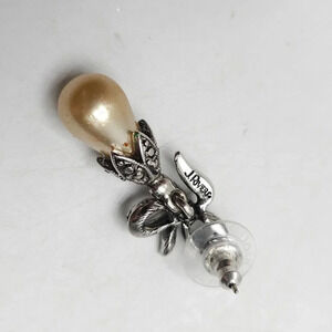 Vintage Joan Rivers Red Rhinestone Faux Pearl Silver Tone Ribbon Dangle Earrings