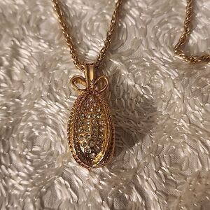 Gorgeous Vintage Joan Rivers Egg Shaped Pendant Gold Necklace.