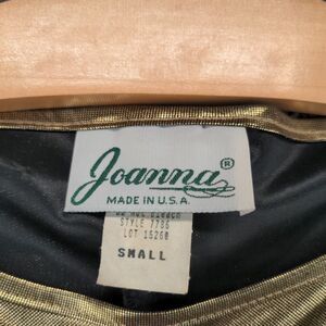Vintage Joanna Metallic Gold Blouse Womens Size Small Short Sleeve Shiny