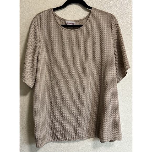 Vintage Joanna Women’s Plus Size 24W Short Sleeve Knit Blouse Textured Champagne