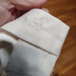 Last picture shows pin hole from where a tage was stapled.