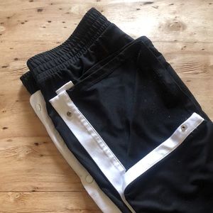 Vintage Jockey tearaway track pants. Black with white racing stripe. Snap closures on outside leg. Great condition.