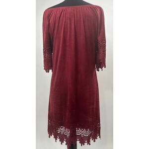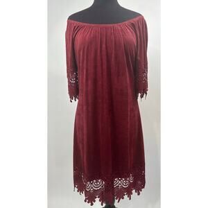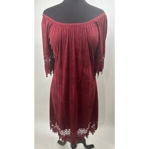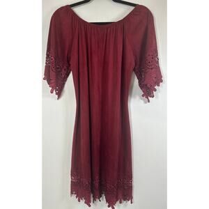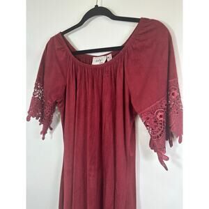 Vintage Jody California SZ Large Red Faux Suede Lace Dress Hippie Boho Retro